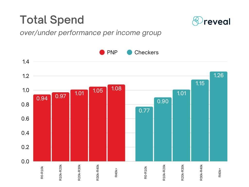 Not quite Woolworths, though, that is overperforming in the R40k+ segment by a factor of 1.55.