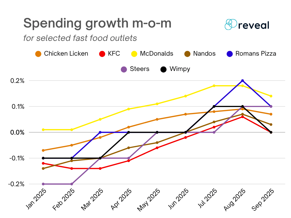 For the first six months, most major franchises (with the exception of McDonald’s) saw sales decline month-on-month, a sign of how stretched South African consumers have felt.