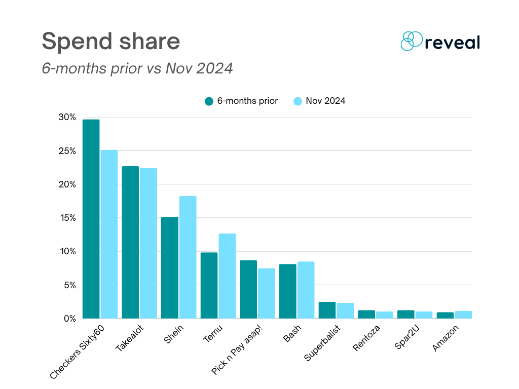 Takealot maintained its share of the spend, indicating that it likely saw the 32.8% increase reflected in its numbers.